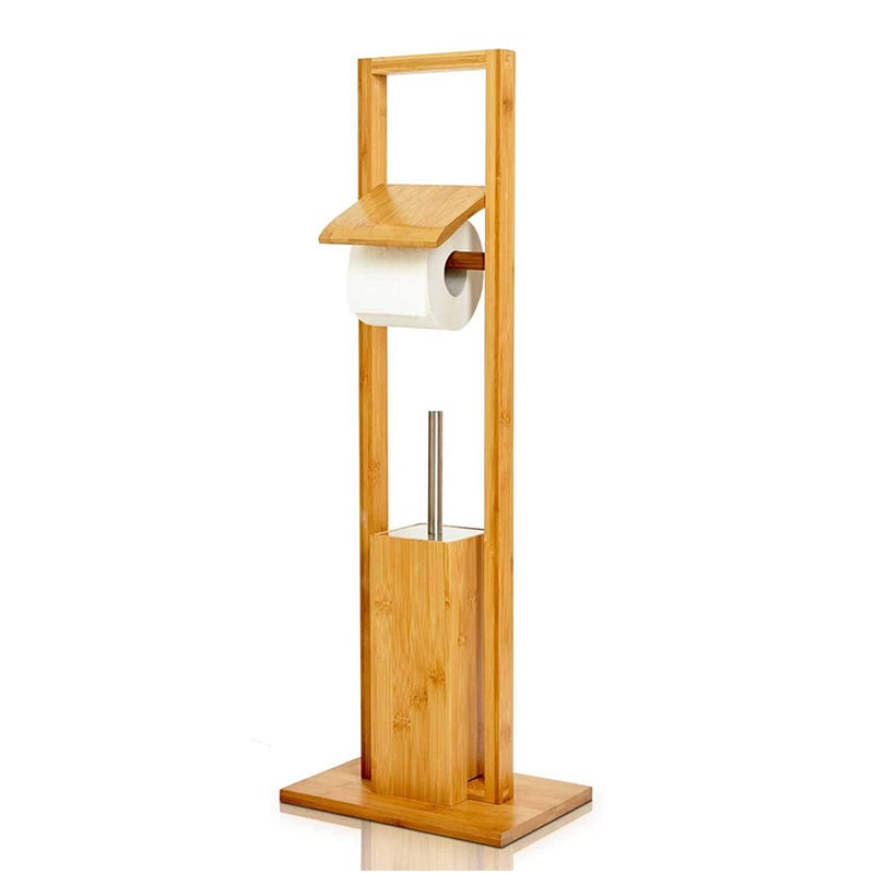 Αξεσουάρ Βάση Οργάνωσης Τουαλέτας - Μπάνιου από Μπαμπού με Βάση για Κρέμαση Χαρτιού & Πιγκάλ