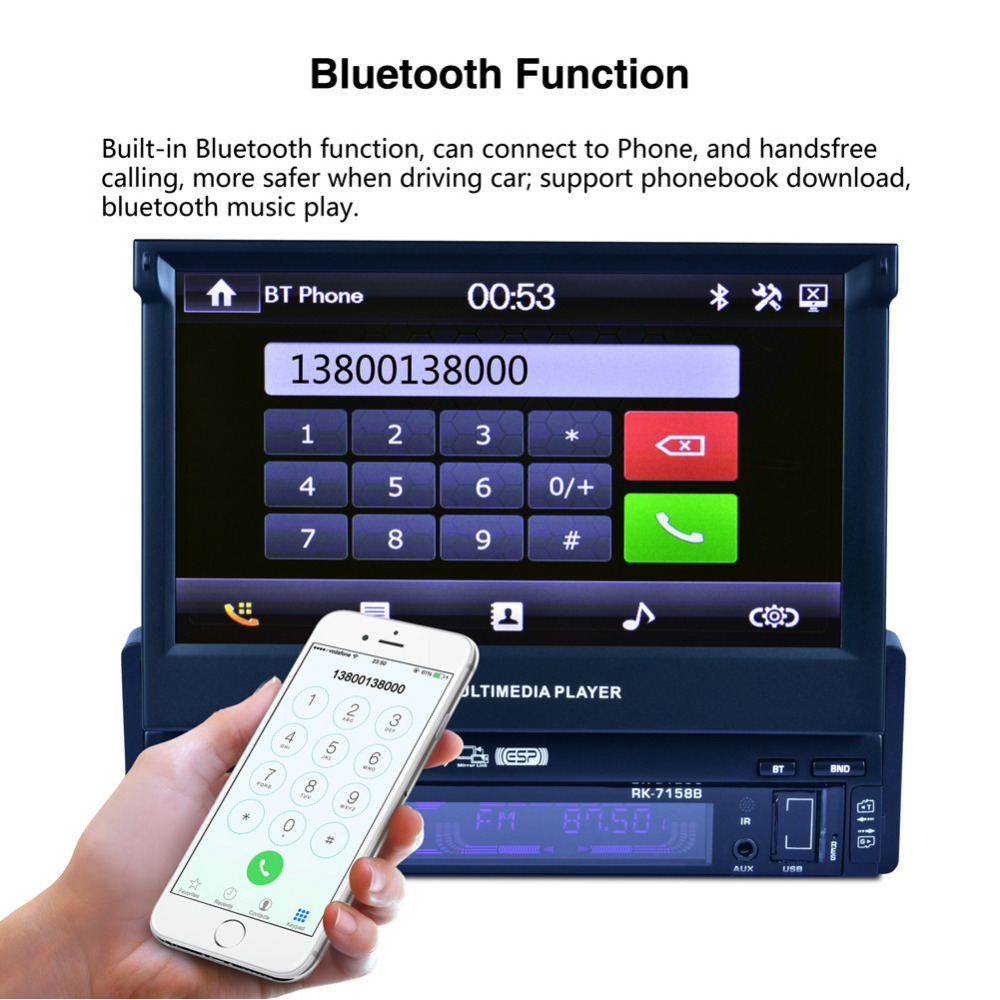 Αναδιπλούμενη Multimedia Οθόνη Αφής Αυτοκινήτου 1 DIN 7inc Bluetooth Handsfree MP4,MP3,USB,SD,AUX,MIC,TV Ηχοσύστημα με Τηλεχειριστήριο & Ελληνικό Menu