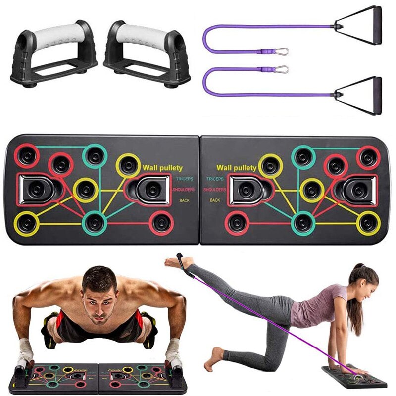 Αναδιπλούμενη Σανίδα Εκγύμνασης Όλου του Σώματος με 13 Λαβές & Λάστιχα Αντίστασης - Push Up Board 13 in 1