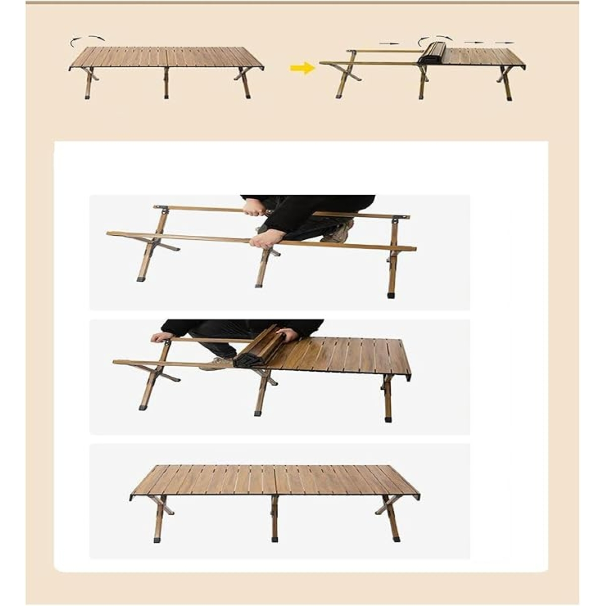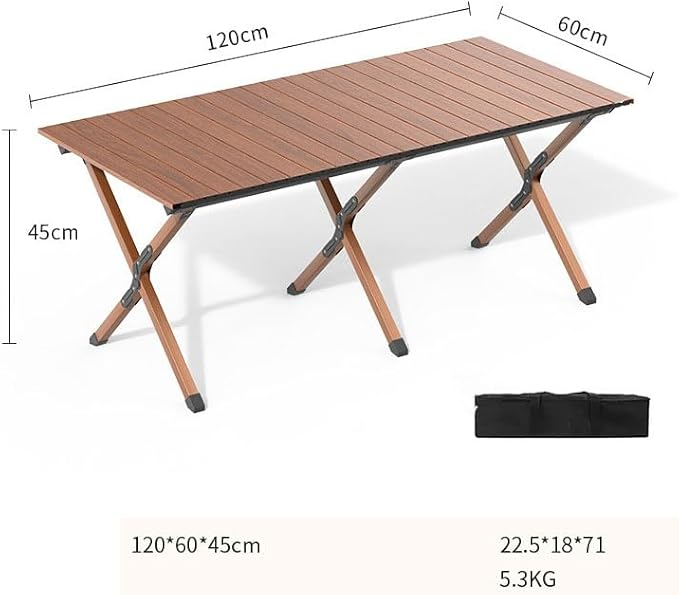 Αναδιπλούμενο Φορητό Τραπέζι Camping με Ξύλινη Όψη - 120x60x45cm