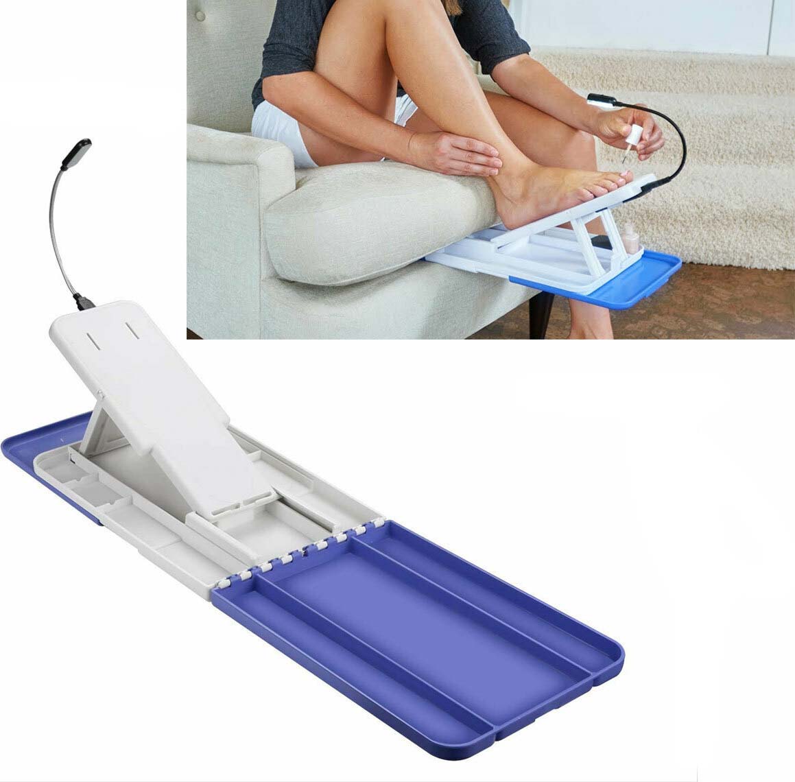 Δεν χρειάζεται πλέον να ταλαιπωρείστε για να επιτύχετε το τέλειο πεντικιούρ! Προμηθευτείτε αυτή τη ρυθμιζόμενη βάση για πεντικιούρ με φωτισμό LED, για να φτιάχνετε τα νύχια των ποδιών σας εύκολα και άνετα, χωρίς δυσκολία! Μπορείτε να το έχετε μαζί σας πάντα και παντού καθώς είναι αναδιπλούμενο.