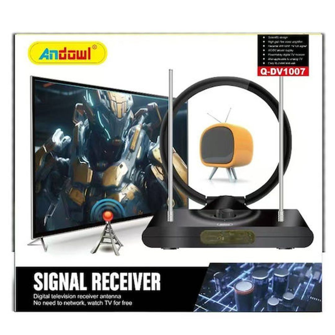 Andowl Εσωτερική Κεραία TV DVB-T/T2 με Τροφοδοτικό – Ισχυρή Λήψη & Εύκολη Εγκατάσταση