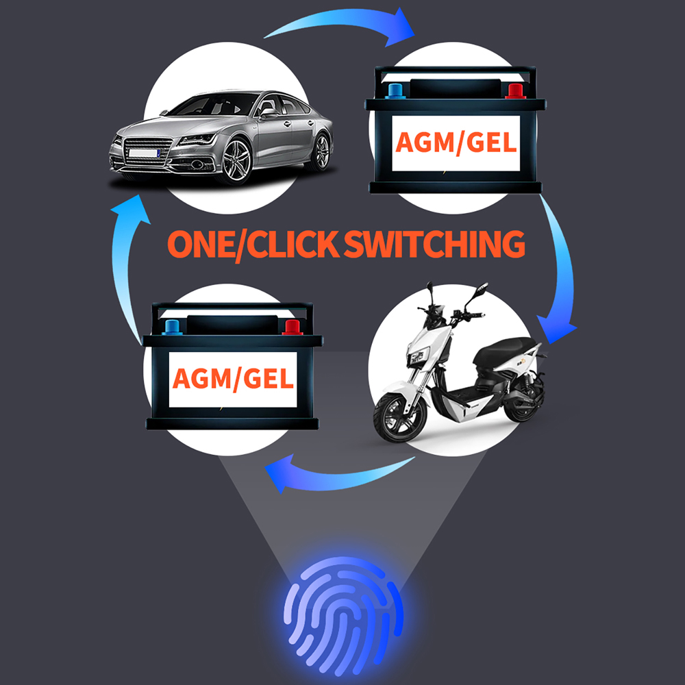 Κατάλληλος για μπαταρίες 12V, λειτουργεί με μπαταρίες SLA, WET, MF, FLOODED, GEL, VRLA, AGM, EFB, που σημαίνει ότι μπορεί να χρησιμοποιηθεί για μπαταρίες σε αυτοκίνητα, μοτοσικλέτες, σκάφη και άλλα.