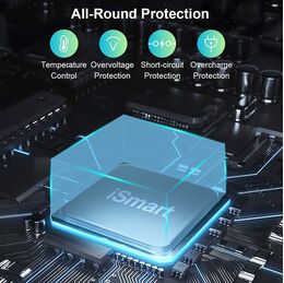 Διαθέτει επίσης ένα πρωτοποριακό σύστημα προστασίας ασφαλείας, το οποίο μπορεί εύκολα να αποφύγει πιθανούς κινδύνους όπως βραχυκύκλωμα ή υπερβολική τάση και ρεύμα!