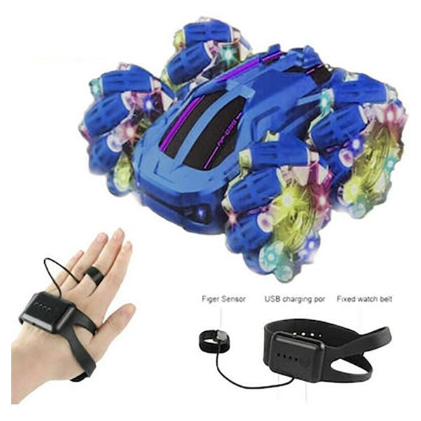 Τηλεκατευθυνόμενο Αυτοκίνητο Ακροβατικών Παντός Τερέν με Χειριστήριο και Πολύχρωμο Φωτισμό Μπλε
