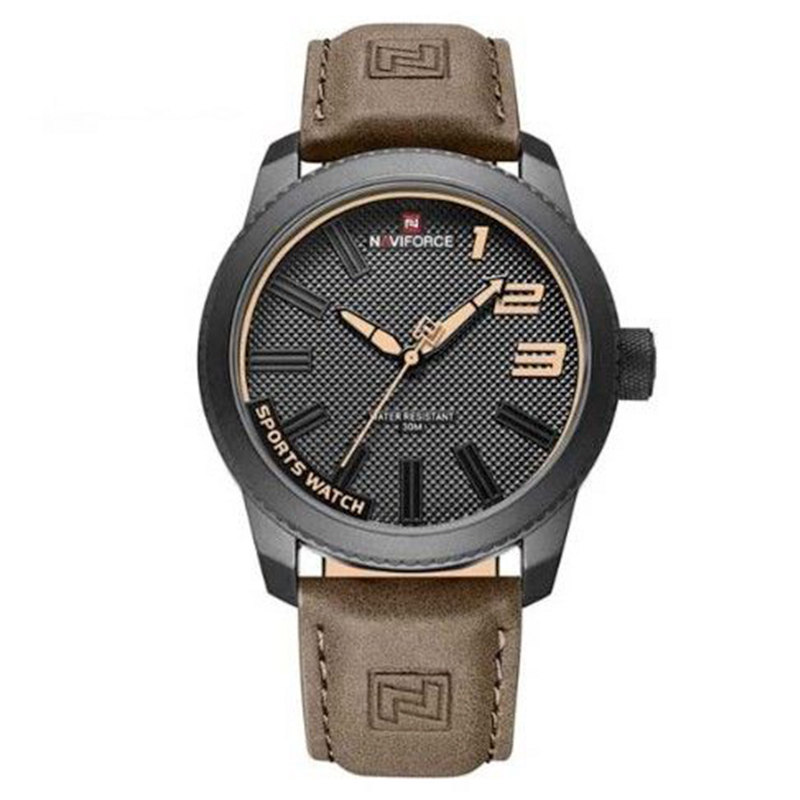 Ανδρικό Casual Ρολόι Χειρός Αδιάβροχο με Δερμάτινο Λουράκι Naviforce Καφέ Σκούρο