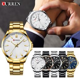 Ανδρικό αδιάβροχο ρολόι Curren με μαύρο μπρασελέ από ανοξείδωτο ατσάλι, μεταλλική μαύρη κάσα και μαύρο καντράν με χρυσές λεπτομέρειες.