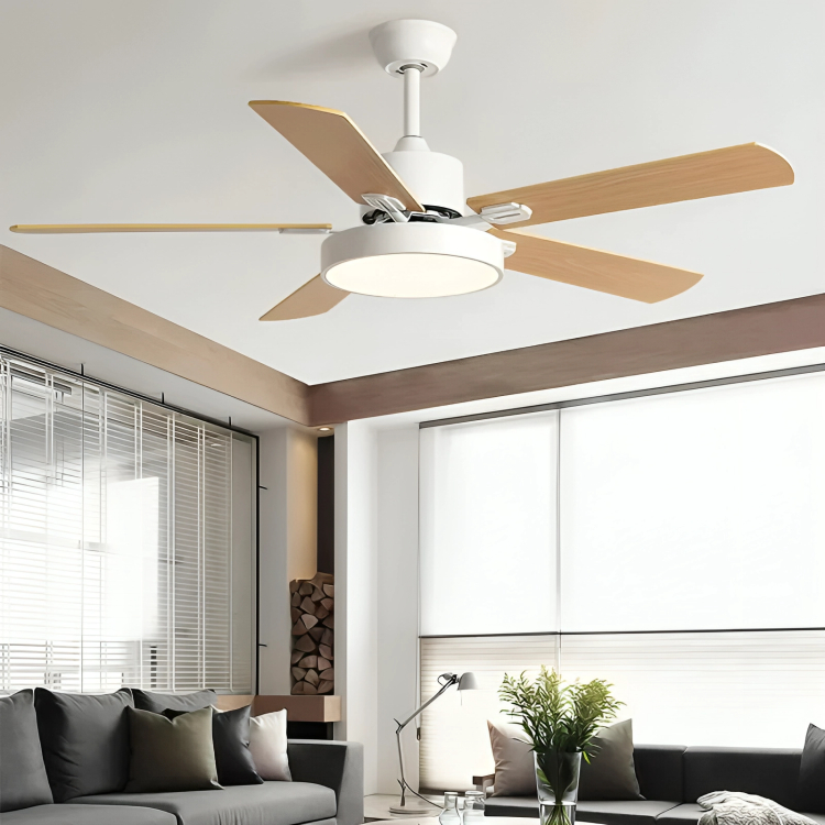 Ανεμιστήρας Οροφής με 5 Ξύλινα Πτερύγια και Φωτιστικό LED - Λευκό