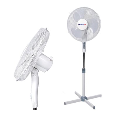 Ανεμιστήρας Ορθοστάτης, διαμέτρου 40cm, ισχύος 40W, 3 ταχυτήτων, περιστρεφόμενος, με ρυθμιζόμενο ύψος και κλίση, δικτυωτό προστατευτικό πλέγμα που αφαιρείται για εύκολο καθάρισμα, σε μοντέρνο σχέδιο και χρώμα Λευκό/Γκρι..
