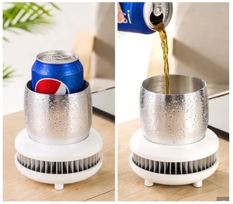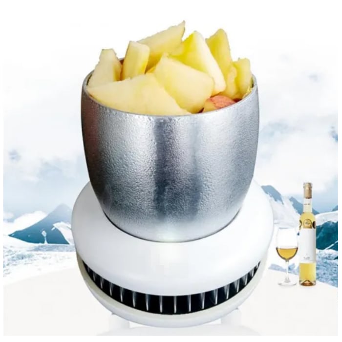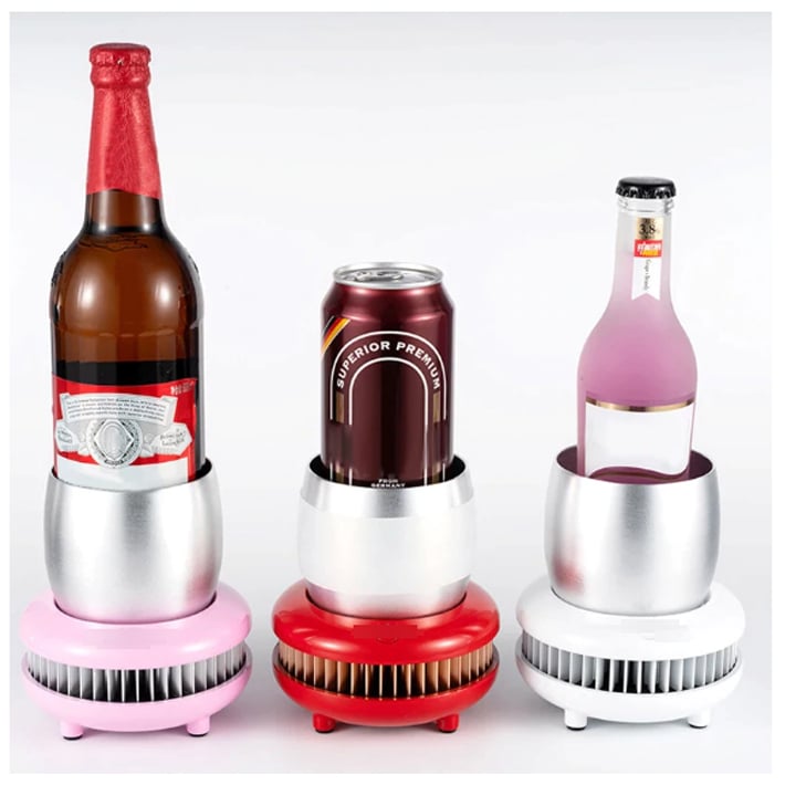 - Mε δύο τρόπους χρήσης: Μπορείτε να βάλετε τα ποτά απευθείας στο δοχείο (για ταχύτερη απορρόφηση θερμότητας) ή με τη συσκευασία τους αν το υλικό της είναι μεταλλικό ή γυαλί (γεμίζοντας με νερό τον περισσευούμενο χώρο).