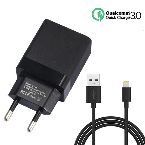 Αντάπτορας USB Ταχυφορτιστής 3A Κινητού με Καλώδιο Lightning USB Andowl Quallcomm Quick Charge 3.0 - Fast Smart Charger