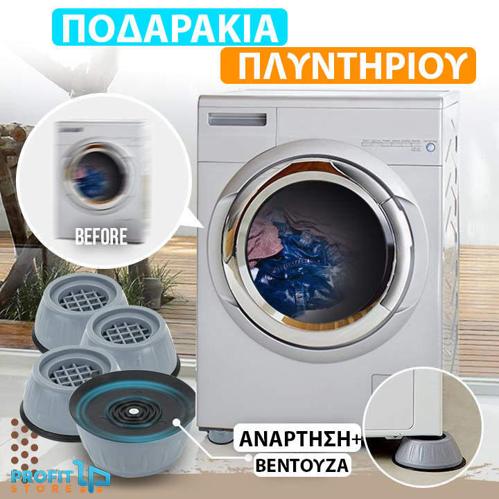 Οι αντικραδασμικές & αντιολισθητικές βάσεις πλυντηρίου 4 τμχ ήρθαν για να λύσουν τα αιώνια και άλυτα μέχρι σήμερα προβλήματα που δημιουργεί το πλυντήριο στο μπάνιο! Κατάλληλο για κάθε πάτωμα.