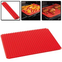 Αντικολλητική επιφάνεια ψησίματος από σιλικόνη, ειδικά σχεδιασμένη με μικρές πυραμίδες, που επιτρέπει στον αέρα να κυκλοφορεί ομοιόμορφα γύρω από το φαγητό, κάνοντας το τραγανό και ζουμερό.
