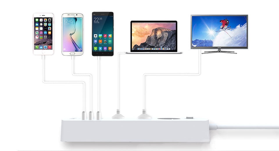 - 3 Θύρες USB, μέγιστη τροφοδοσία 3.1Α για γρήγορη φόρτιση (fast charging)