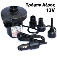 Ηλεκτρική αντλία αέρος 12V, κατάλληλη για φουσκωτά σκάφη και στρώματα.Διαθέτει καλώδιο για τον αναπτήρα του αυτοκινήτου και 2 αντάπτορες για να προσαρμόζεται σε κάθε βαλβίδα.