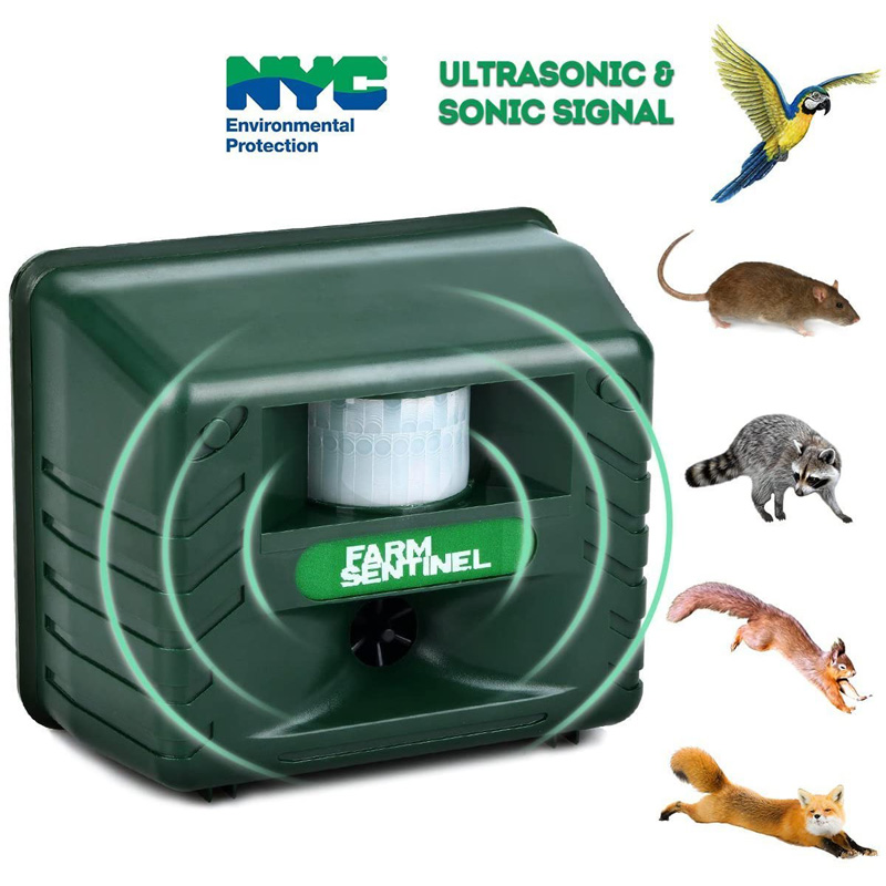 - Υπέρηχοι: Οι υπέρηχοι, είναι ήχοι χαμηλής συχνότητας, που γίνονται εντόνως αντιληπτοί από τα ζώα, ενώ οι άνθρωποι δεν μπορούν να τους ακούσουν. Ωστόσο, διαφορετικά ζώα, είναι ευαίσθητα σε διαφορετικές συχνότητες. Αυτή η συσκευή παράγει ισχυρούς υπερήχους. Διαθέτει ειδική ρύθμιση κατά την οποία μπορείτε να επιλέξετε την συχνότητα που θέλετε να εκπέμπετε ώστε να απωθείτε αποτελεσματικά κάθε ζώο. Πιο συγκεκριμένα διαθέτει επιλογές ανάμεσα σε έντομα, ελάφια, ρακούν, αρμαντίλλο, οπόσουμ, πουλιά, μεφίτες, σκυλιά / γάτες, τρωκτικά / νυχτερίδες και όλα τα ζώα της ίδια συνομοταξίας (αλεπούδες, κουνέλια, ποντίκια, σκίουρους κλπ)