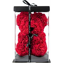 Αρκουδάκι από Τεχνητά Τριαντάφυλλα 25cm σε Συσκευασία Δώρου Κόκκινο