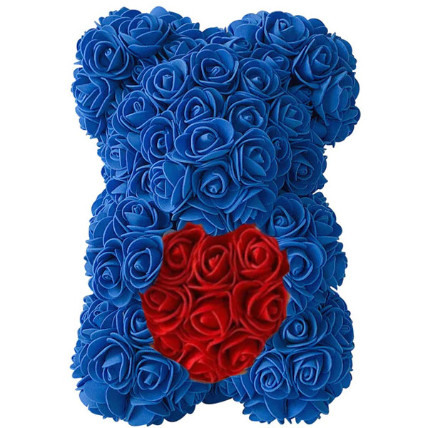 Αρκουδάκι από Τεχνητά Τριαντάφυλλα σε Συσκευασία Δώρου με Φιόγκο 25cm - Αρκούδι που κρατάει Καρδούλα Rose Bear - Δώρο Αγίου Βαλεντίνου Μπλε
