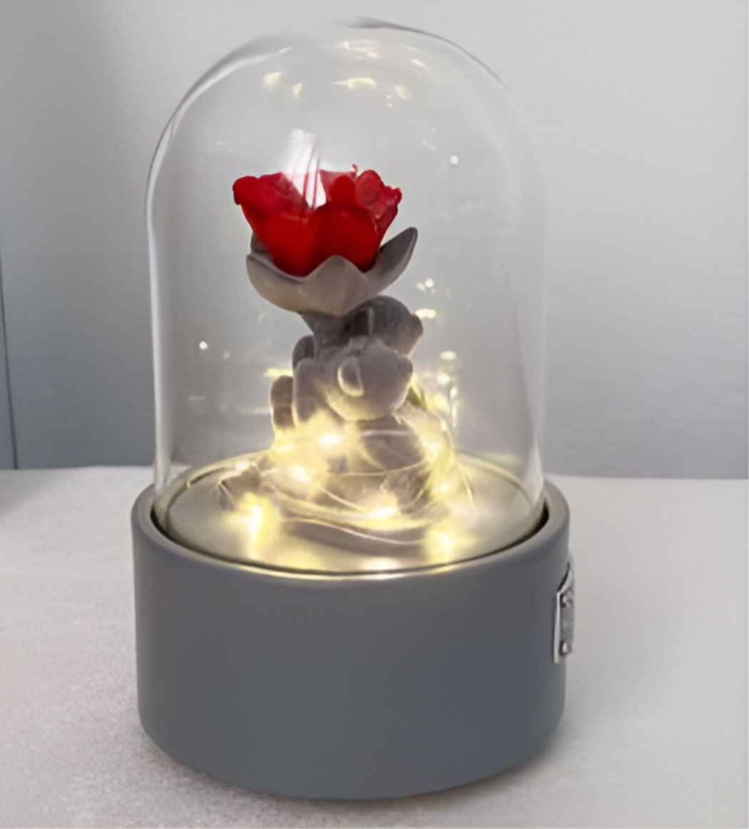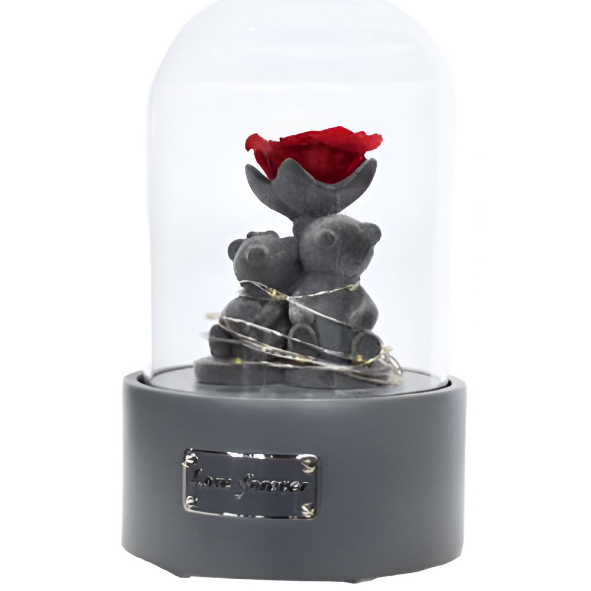 Βασισμένο στο κλασικό σύμβολο του ρομαντισμού, αυτό το δωράκι συνδυάζει δύο γλυκά αρκουδάκια με ένα τριαντάφυλλο μέσα σε έναν κομψό γυάλινο θόλο... φωτίζεται απαλά από ενσωματωμένα LED δημιουργώντας μια ζεστή, αιθέρια λάμψη που γεμίζει τον χώρο με ρομαντική διάθεση.