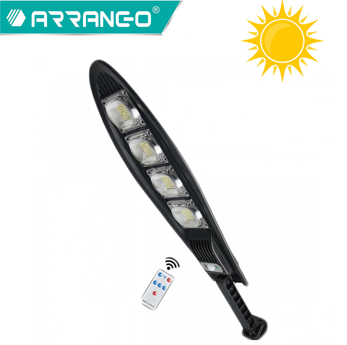Ηλιακό φωτιστικό δρόμου, με την εγγύηση ποιότητας της ARRANGO® που συγκεντρώνει και αποθηκεύει ηλιακή ενέργεια για τη λειτουργία του, ώστε να μη χρειάζεται να συνδεθεί σε παροχή ρεύματος.