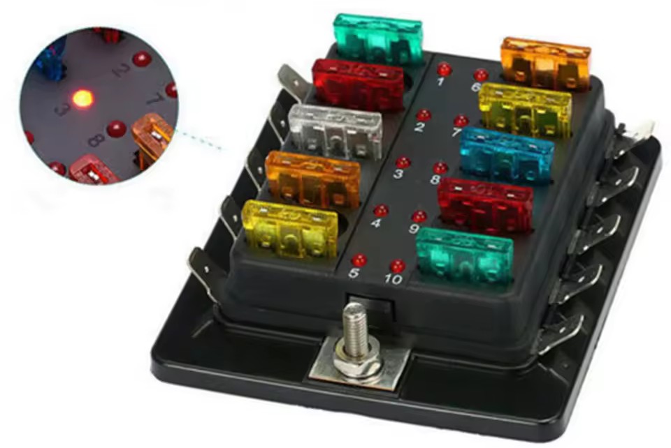 Επιπλέον, κάθε υποδοχή LED ανάβει όταν μια ασφάλεια καεί, διευκολύνοντας τον εντοπισμό του προβλήματος χωρίς χρονοβόρες διαδικασίες.