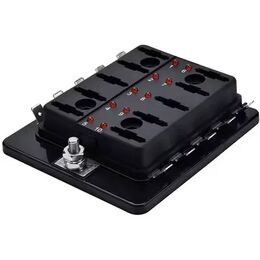 Η ασφαλειοθήκη 10 θέσεων με ενσωματωμένες LED ενδείξεις κατάστασης αποτελεί ιδανική λύση για τη διαχείριση πολλαπλών κυκλωμάτων σε σκάφη, τροχόσπιτα, οχήματα και άλλες εγκαταστάσεις χαμηλής τάσης.
