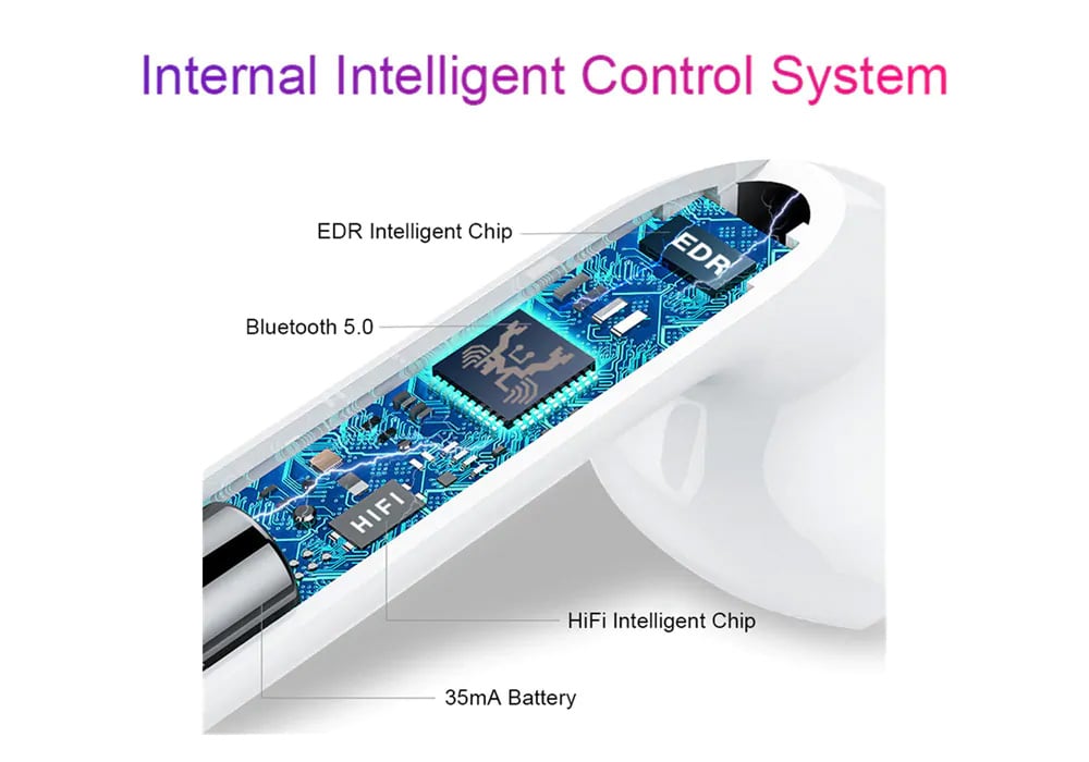 Νέας γενιάς ασύρματα ακουστικά αφής bluetooth 5.0, τύπου iPhone με αυτοματοποιημένη σύνδεση με pop-up window με το άνοιγμα της θήκης φόρτισης. Σε αντίθεση με φθηνές απομιμήσεις που διαθέτουν κουμπί πάνω στο ακουστικό, αυτό το μοντέλο είναι αφής για εξαιρετική κομψότητα.