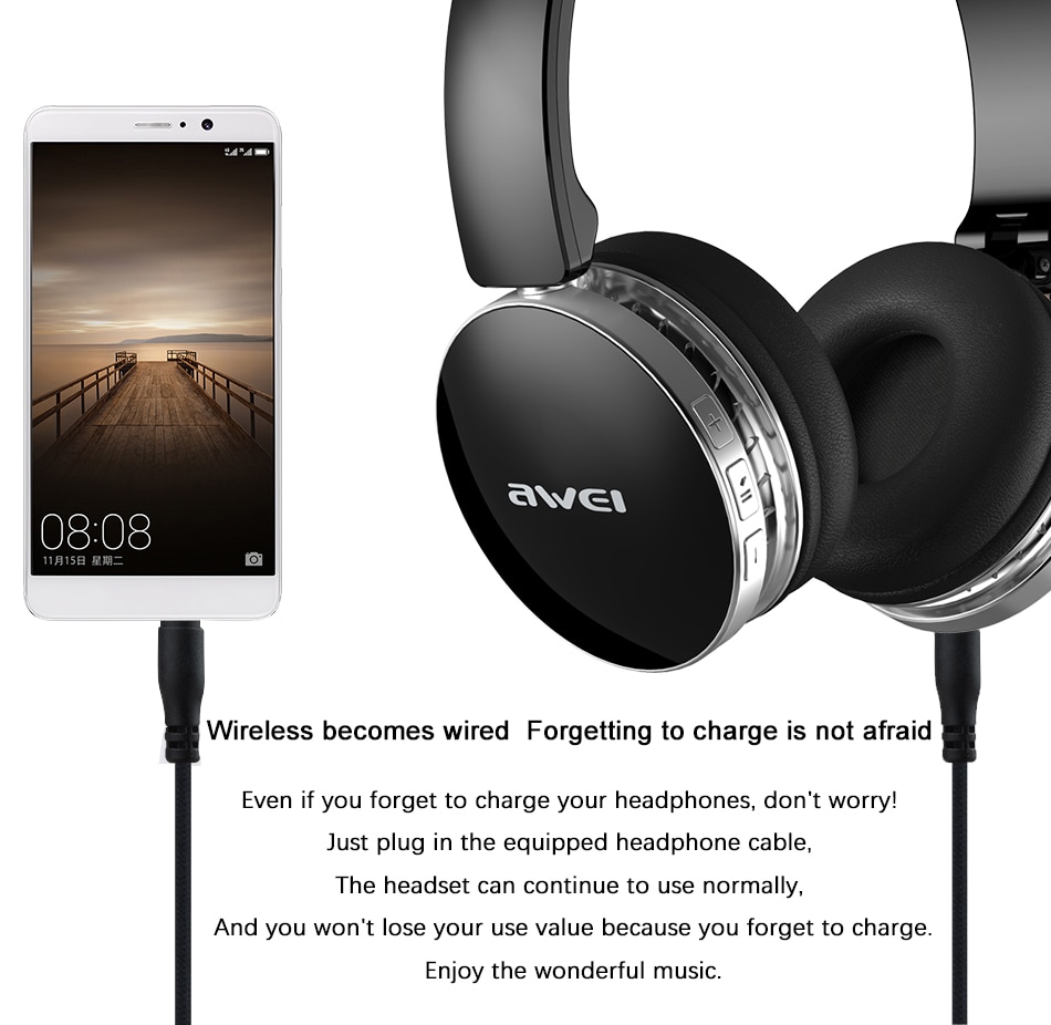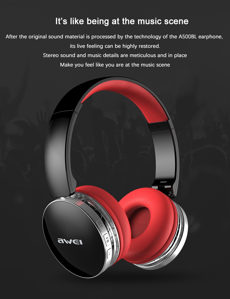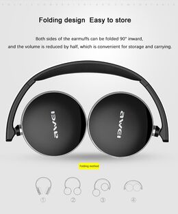 Ασύρματα & ενσύρματα on-ear bluetooth ακουστικά A500BL, υψηλής ποιότητας και αισθητικής, με είσοδο AUX Jack 3,2mm για σύνδεση με το κινητό ή κάποια άλλη εξωτερική πηγή ήχου με την εγγύηση της AWEI.