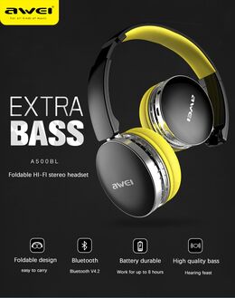 Ασύρματα & Ενσύρματα On-Ear Ακουστικά AWEI A500BL Bluetooth Headphones Aux, Handsfree με Μικρόφωνο - Foldable Wireless Headset Noise Canceling