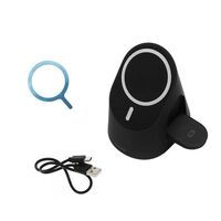 Βάση ασύρματης φόρτισης για κινητό, ακουστικά και smartwatch σε μαύρο χρώμα. Διαθέτει θύρα USB Type C.