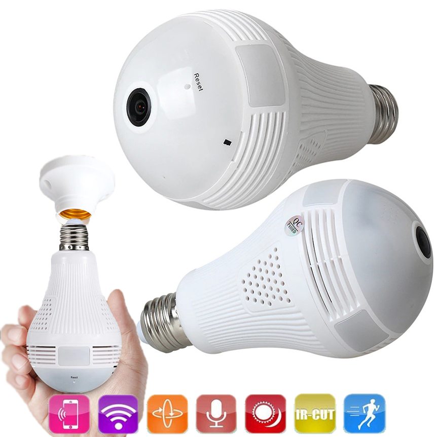 Ασύρματη Κρυφή Κάμερα Λάμπα IP Wifi με Ευρυγώνιο Φακό Fish Eye HD 960p Πανοραμικής Θέασης, Ε27, Αισθητήρα Κίνησης, Ειδοποιήσεις, Μικρόφωνο & Ηχείο