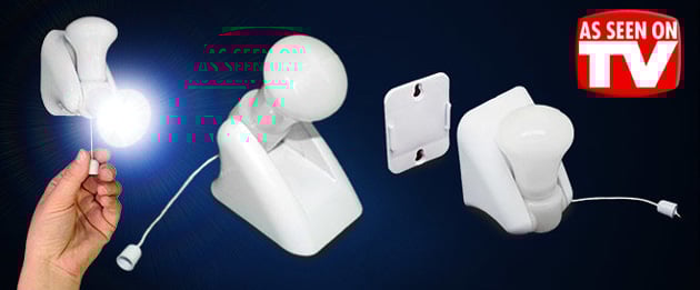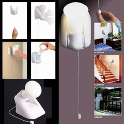 Κολλάτε την αυτοκόλλητη βάση στον τοίχο, χωρίς τρύπες, καλώδια ή πρίζες, περνάτε τη λάμπα και την ανάβετε τραβώντας το κορδονάκι, επίσης σβήνει με τον ίδιο τρόπο.