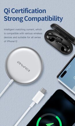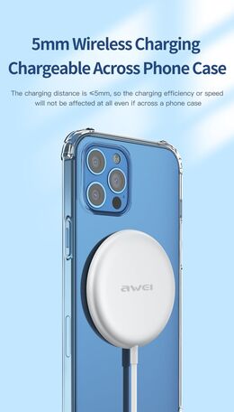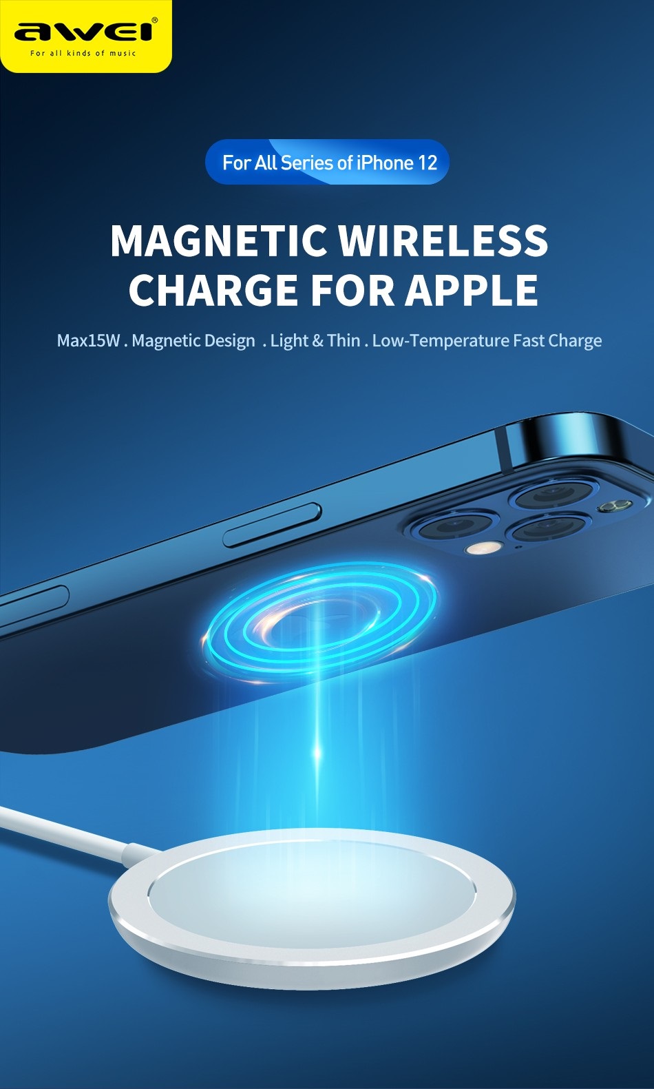 Ασύρματη Μαγνητική Magsafe Βάση Ταχυφόρτισης για Apple Awei® Type-C σε Lightning - Λευκή