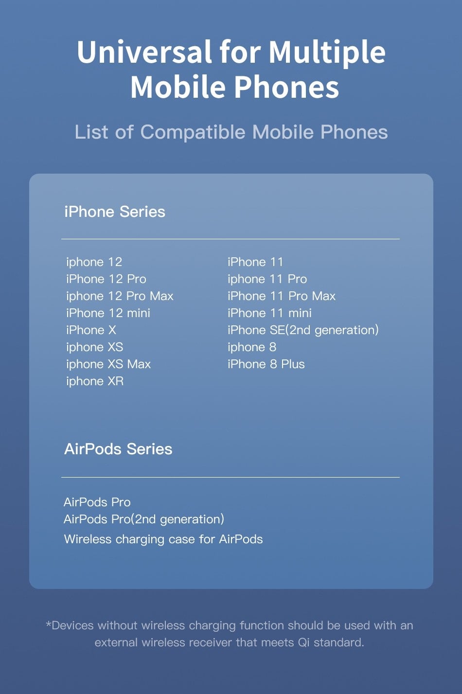 Ο ασύρματος φορτιστής είναι ιδανικός για την γρήγορη, ασύρματη φόρτιση της σειράς iPhone 12 ή οποιουδήποτε άλλου smartphone που υποστηρίζει ασύρματη φόρτιση.