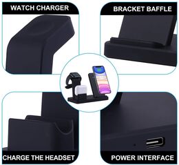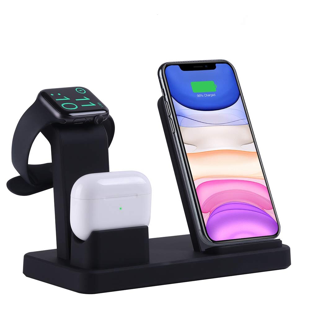 Αυτή η ασύρματη βάση φόρτισης 3 σε 1 διαθέτει σημεία φόρτισης για το κινητό, το ρολόι και τα ακουστικά σας ΌΛΑ μαζί.Οι φορτιστές για το κινητό και το ρολόι είναι ασύρματοι ενώ για τα ακουστικά Airpods ενσύρματη.