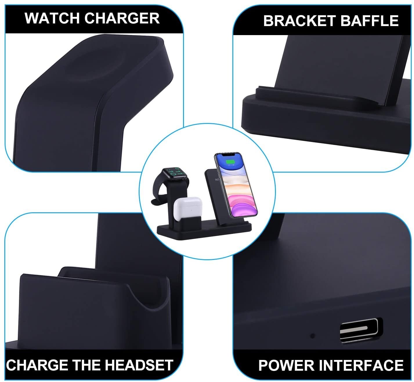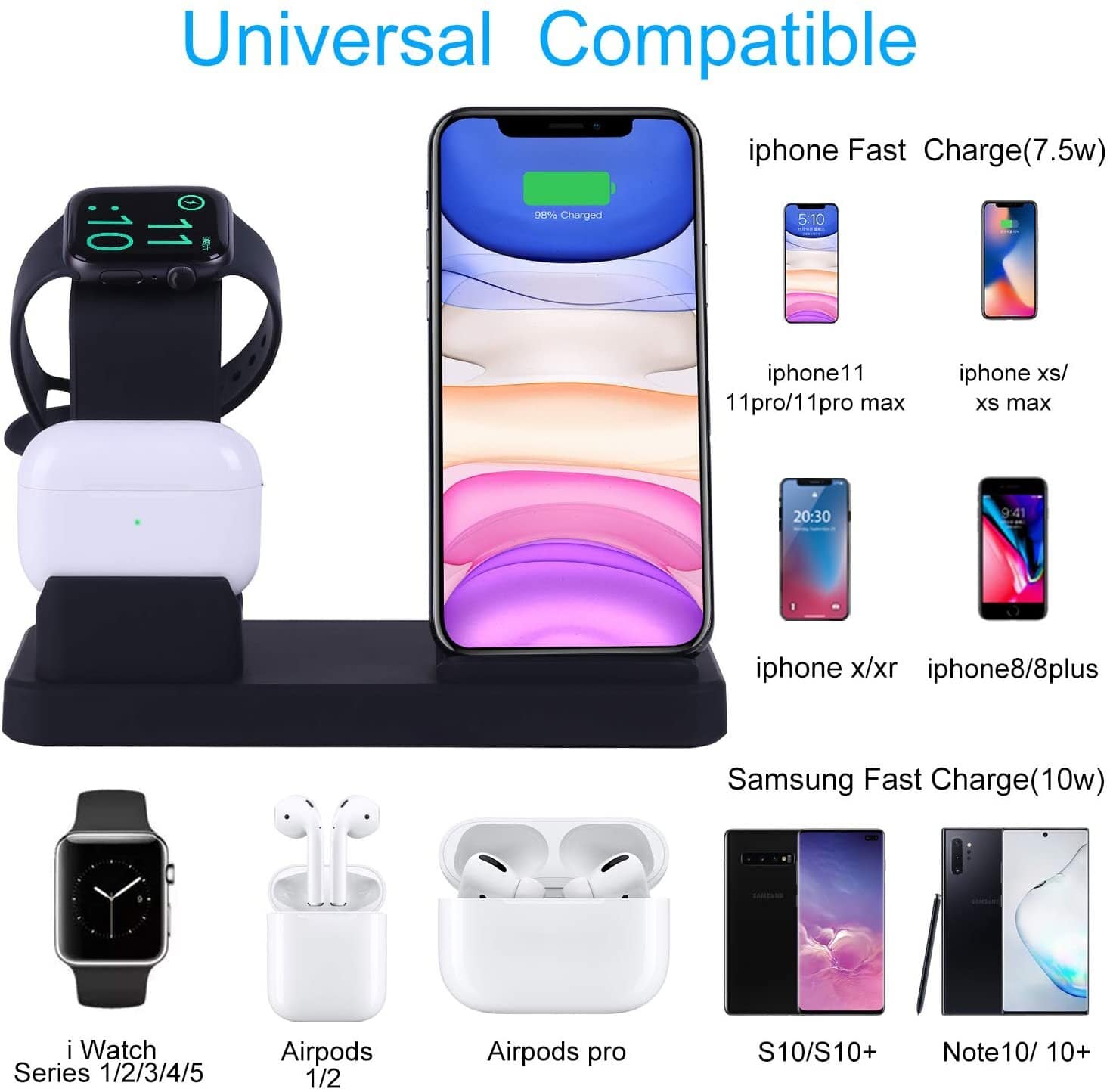 Βάση φόρτισης για iPhone 5/5s/5c/6/6s/6 Plus/6s Plus/7/7 Plus,Apple Watch, 10W Charges Galaxy S9 / S9 + / S8 / S8 + / Note 8, 5W και για άλλες συσκευές QI.