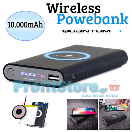 Ασύρματη Βάση Φόρτισης & Ασύρματο Power Bank 2 in 1 Quantum Pro Qi Wireless Charging 10.000mAh