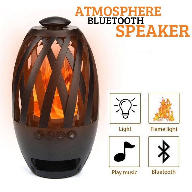 Μίνι ασύρματο επαναφορτιζόμενο Bluetooth ηχείο & ατμοσφαιρικό φωτιστικό λάμπα με εφέ φλόγας για να ακούτε τη μουσική σας όπου εσείς θέλετε αλλά και ταυτόχρονα δημιουργείτε και το κατάλληλο περιβάλλον. Ιδανικό για την παραλία το βράδυ, το μπαλκόνι στο εξοχικό σας αλλά και όπου εσείς θελήσετε!