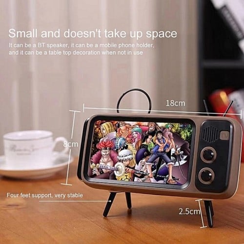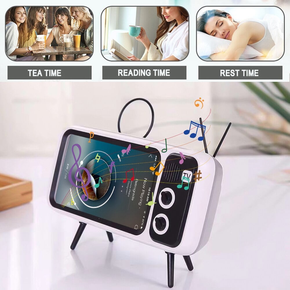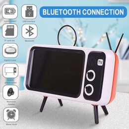 Ασύρματο Bluetooth Ηχείο & FM με Βάση Στήριξης Κινητού τύπου Vintage Retro TV