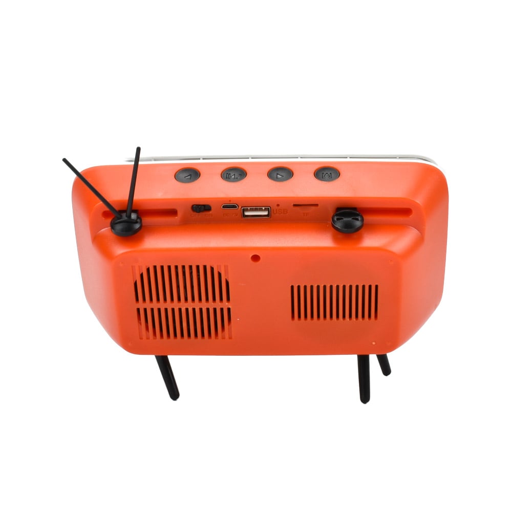 Ασύρματο Bluetooth Ηχείο με Βάση Στήριξης Κινητού με Ραδιόφωνο FM σε Σχήμα Vintage Τηλεόρασης Επαναφορτιζόμενο - Πορτοκαλί
