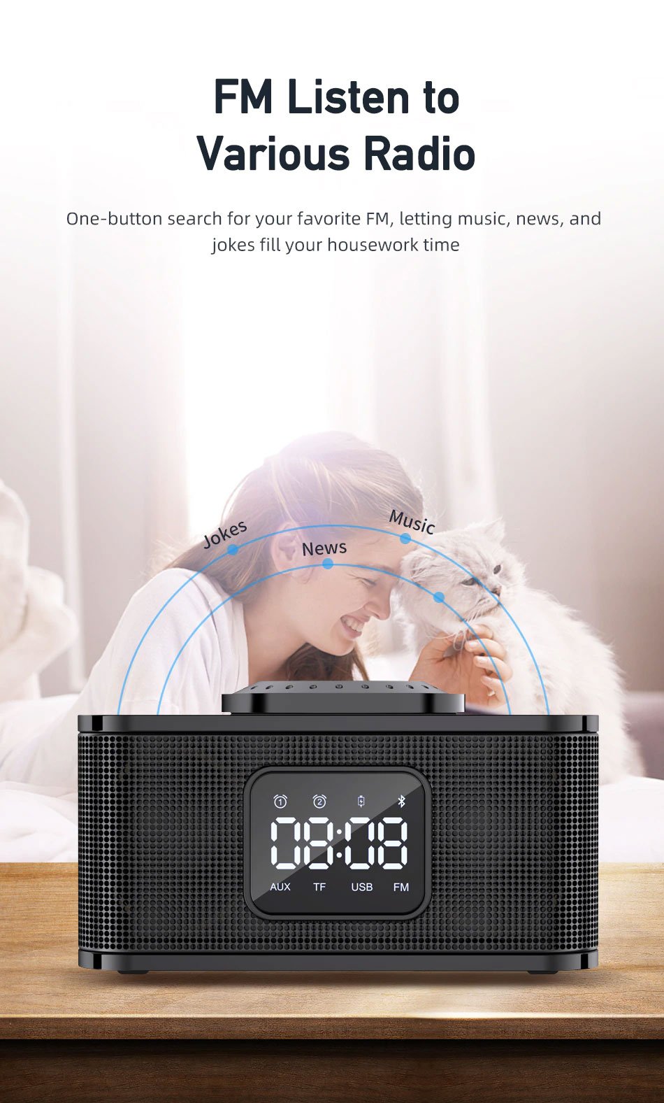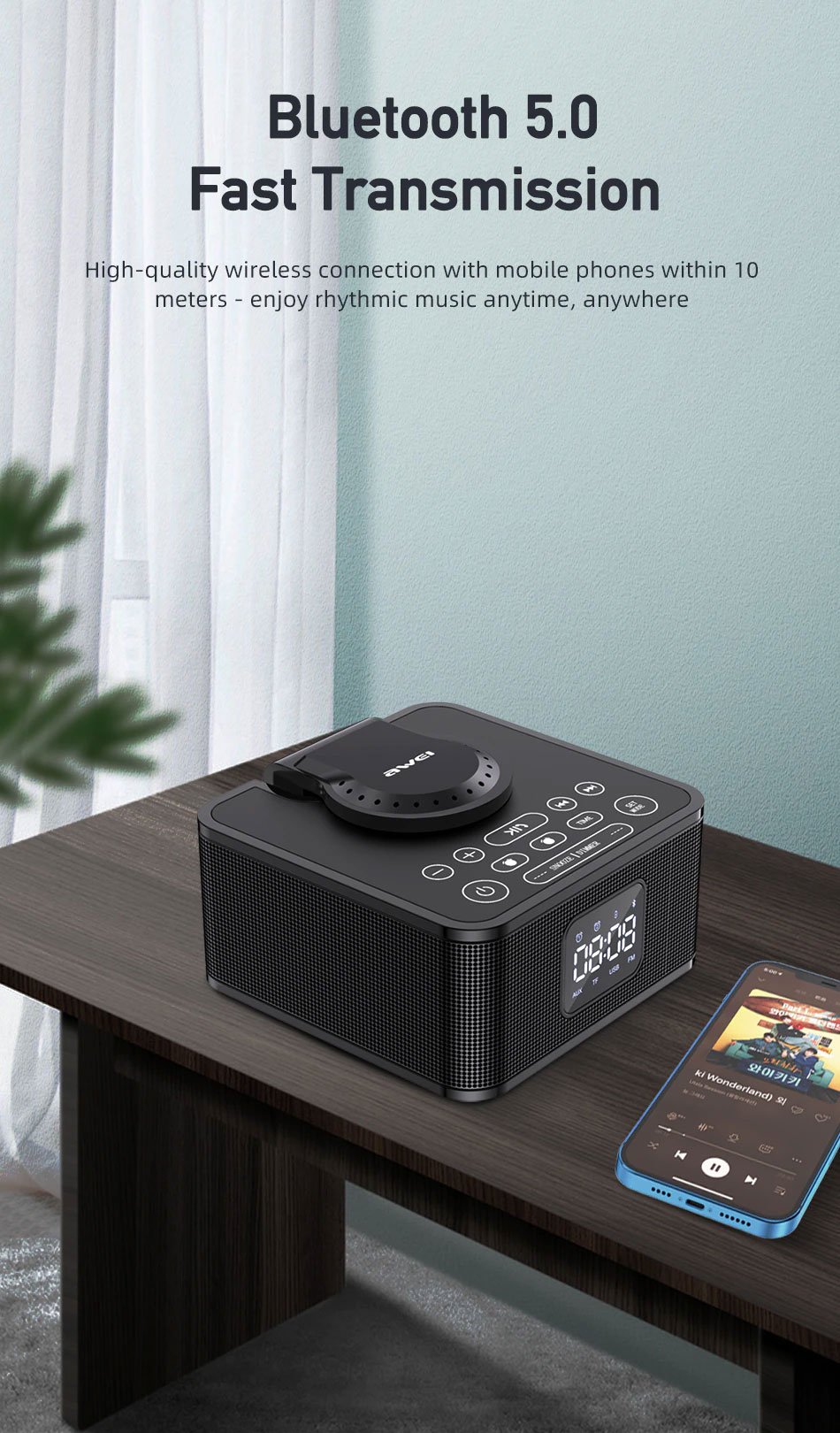 Φορητό Ρολόι , Ηχείο , PowerBank 8000mAh με Ασύρματο Φορτιστή, Bluetooth Σύνδεση & Μπαταρία Επαναφορτιζόμενη USB 4 σε 1 AWEI