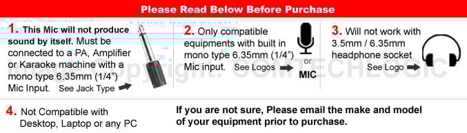 Mic dimensions: 185 (L) x 43 (W)mm (max)