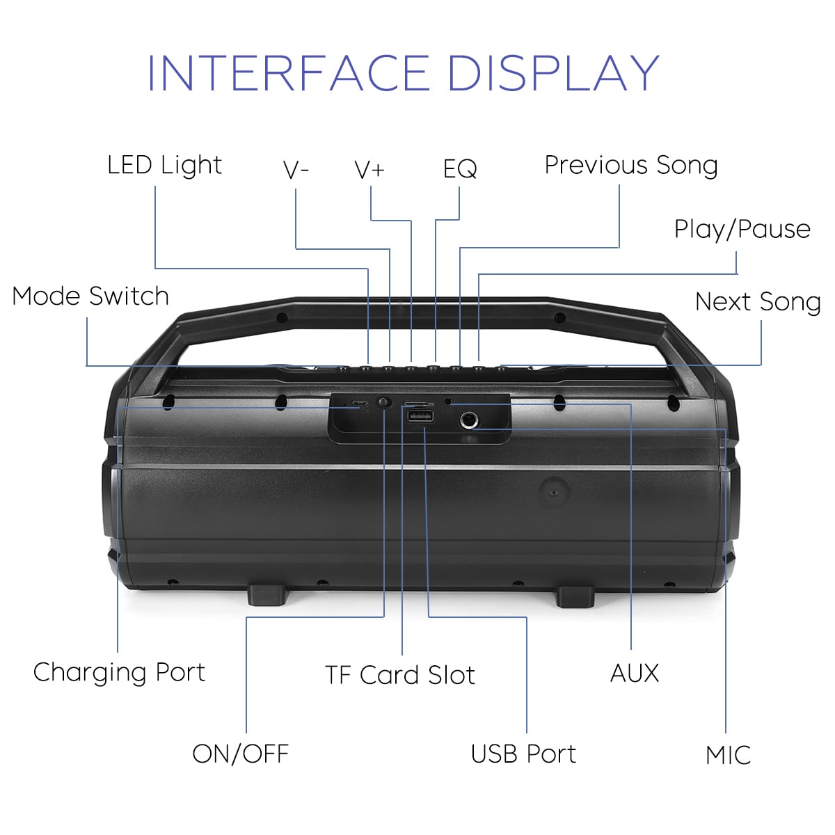 - Interface: USB/TF Card/3.5mm AUX