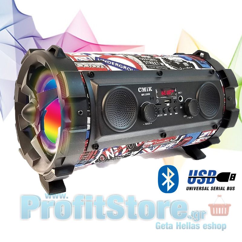 Ασύρματο Ηχοσύστημα Bluetooth με LED Φωτισμό USB/SD/AUX/FM Radio & Mic Karaoke - Ηχείο Multimedia Player