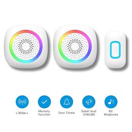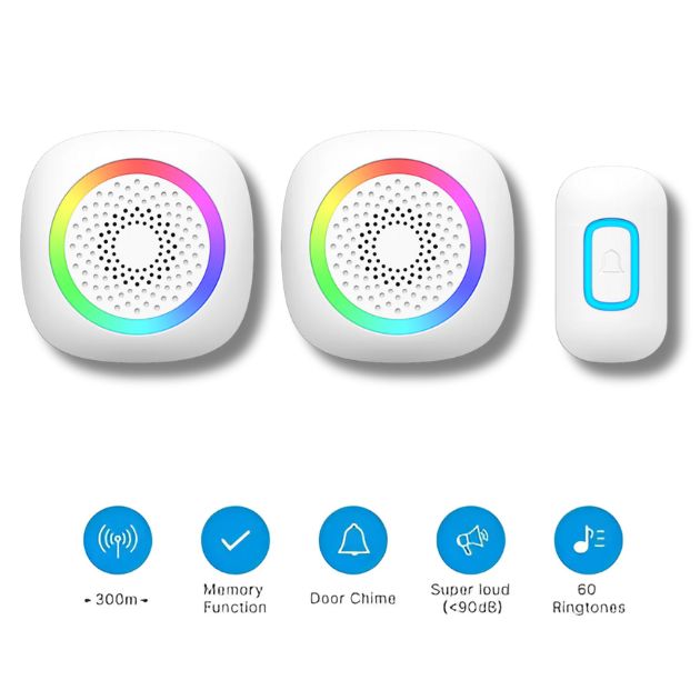 Ασύρματο Κουδούνι Πόρτας με 2 Δέκτες Ακτίνας Συνδεσιμότητας 300 m - 60 Επιλογές Μελωδίας και RGB LED Φωτισμό