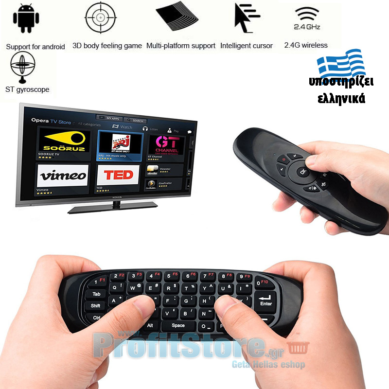 Ασύρματο Πληκτρολόγιο - Χειριστής Κέρσορα Χειρός 2,4GHz - Τηλεχειριστήριο για Λάπτοπ, Smart TV Android, Windows, Mac OS, Linux