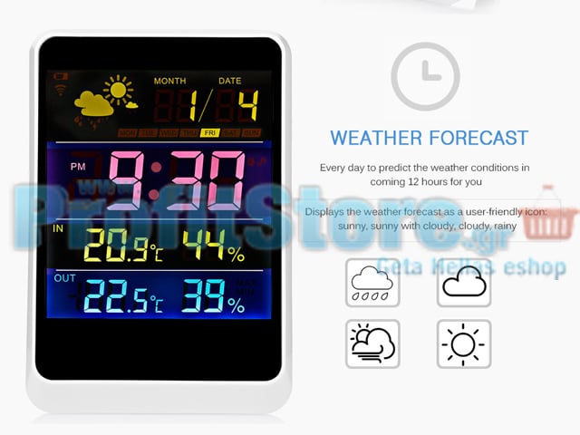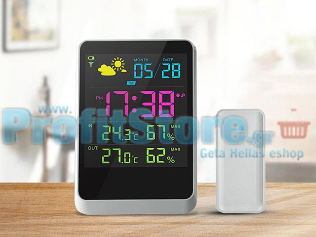 Ασύρματος Μετεωρολογικός σταθμός με φωτιζόμενα σύμβολα ένδειξης καιρικών συνθηκών.