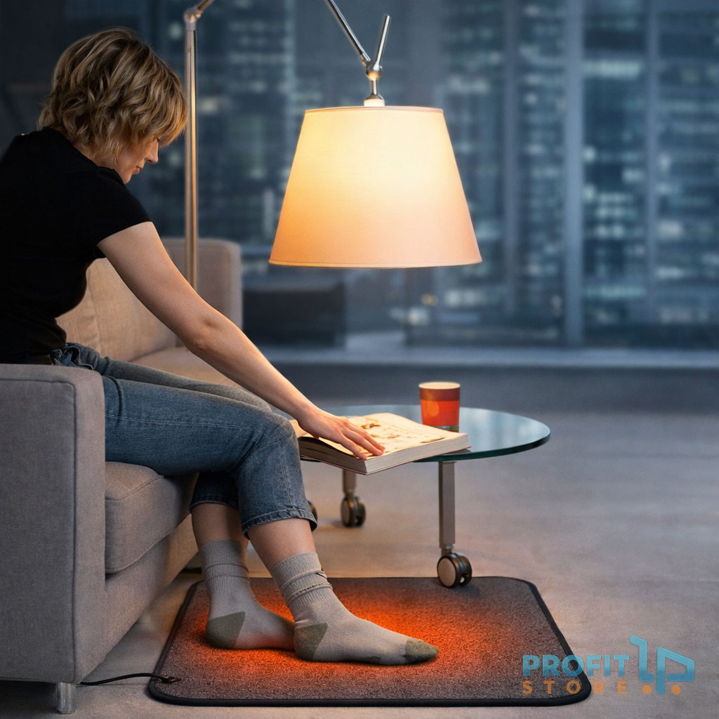 Το θερμαινόμενο χαλάκι θα σας εξοικονομήσει χρήματα. Δεν ζεσταίνει όλο το δωμάτιο, επειδή όμως κρατάει τα πόδια σας ζεστά, σας αρκεί χαμηλότερη θερμοκρασία κατά τουλάχιστον 4oC στον χώρο που εργάζεστε ώστε να αισθάνεστε άνετα. Ρυθμίζετε τον θερμοστάτη της κεντρικής θέρμανσης τουλάχιστον 4 βαθμούς χαμηλότερα και κερδίζετε πολλαπλάσια από το κόστος της θέρμανσης.