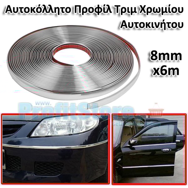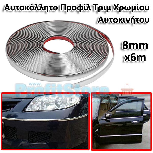 Αυτοκόλλητο Προφίλ Τριμ Χρωμίου Αυτοκινήτου 8mm - 6 μέτρων