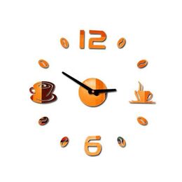 Αυτοκόλλητο Ρολόι Τοίχου 3D DIY με Μηχανισμό Quartz με Σχέδια του Καφέ και Αριθμούς Χάλκινο Χρώμα 40-50 cm